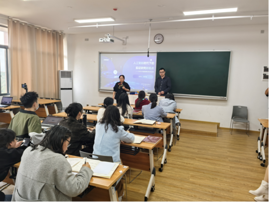 2025年3月25日下午两点半,湖南信息学院国际商学院金融工程系成功举办一场以“人工智能时代下的实证研究新视点”为主题的CSMAR数据库科研应用讲座。此次讲座由深圳希施玛数据科技有限公司高级研究员张中岩博士主讲,旨在提升金融专业教师在金融数据开发运用与实证分析方面的能力。国际商学院院长谭元发教授、金融工程系全体教师及部分学生代表共同参与了此次活动。