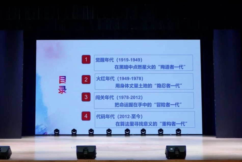 李翠老师从“觉醒年代”到“代码年代”的百年跨度切入,通过四个阶段的青年群像解读历史与当下的联结: