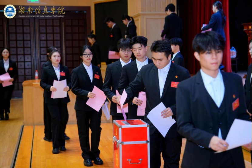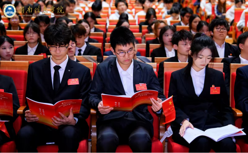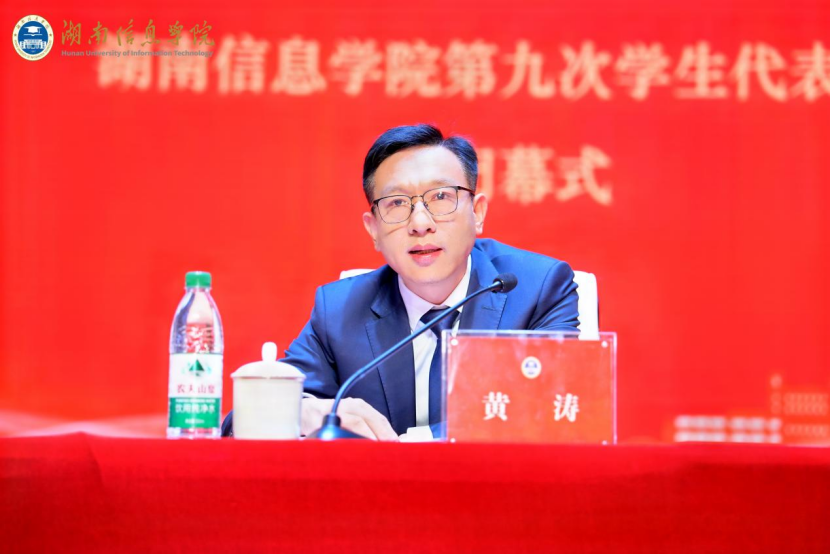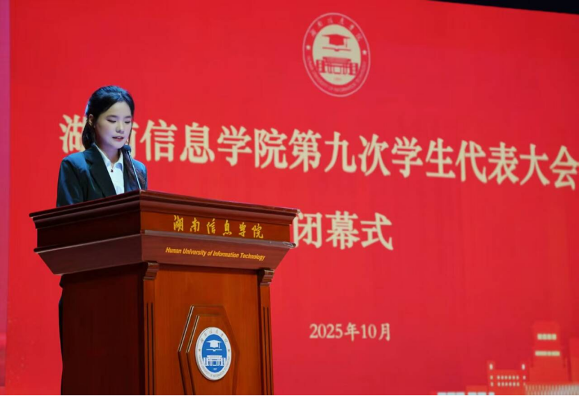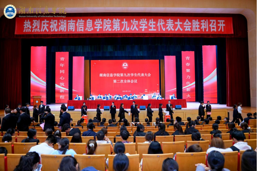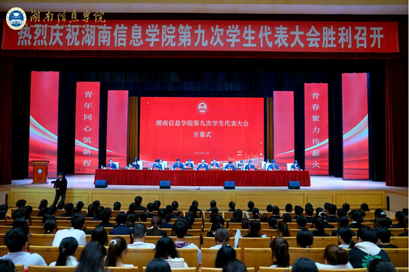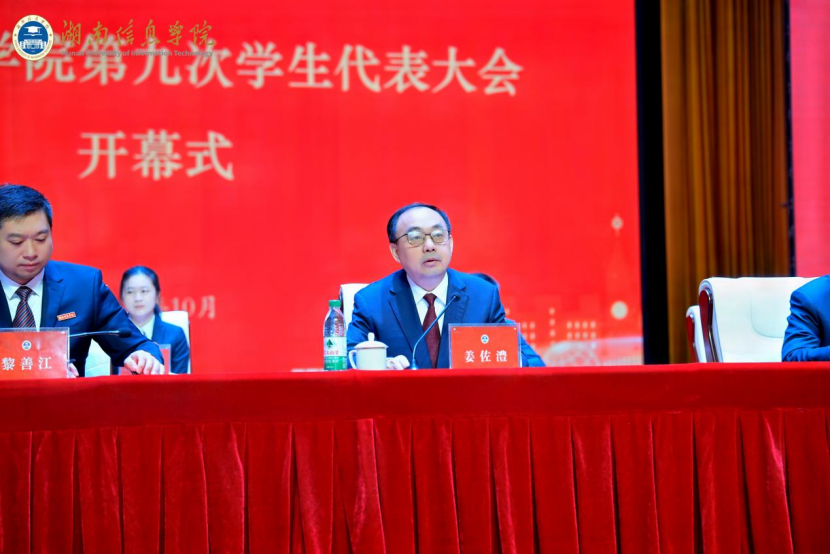 2025年10月25日,湖南信息学院第九次学生代表大会在庄严的国歌声中隆重开幕。本次大会是全校青年学生政治生活中的一件大事,也是学生会工作承前启后、继往开来的重要节点。学校党委副书记、常务副校长姜佐澧,党委委员、副校长黄涛,党委组织部部长史珺宇,各学院党总支书记、团总支书记出席开幕式,大会由学生工作部部长、校团委书记黎善江主持。来自全校的学生代表齐聚一堂,共商青春使命,共绘发展蓝图。