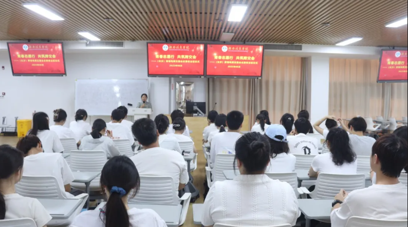 仪式现场秩序井然,各项流程有序推进。国贸系主任周雅颂率先发言,她详细介绍了本次志愿服务的具体内容,明确了服务方向与核心任务;同时,她针对会场纪律、安全规范等注意事项进行强调,为志愿者们筑牢服务前的“安全防线”。